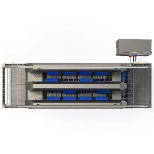 - Portas com fechamento automático e cortinas de ar para evitar entrada de poeira e insetos.