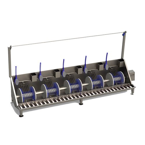 Composto por escovas rotativas ou automáticas – que fazem a limpeza por atrito mecânico combinado com água e sabão sanitizante, garantindo que nenhuma sujeira entre nas zonas de produção – ele é ideal para: